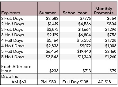Explorer 2025-2026 Tuition Rates