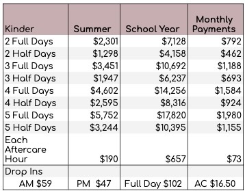 Our Summer Session starts in June and goes until Early August, we do not offer before or after school care in the summer. Our School Year Session begins Mid August and continues through the end of May.